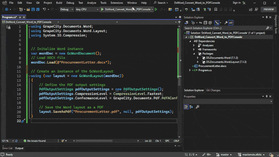 wordDoc.Load(@"ProcurementLetter.docx");This loads the Word file into memory, allowing you to modify or convert it programmatically.