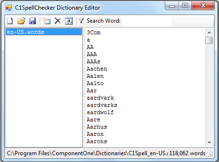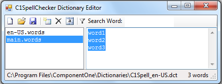 Note: You can find a list of .dct files that ship with IntelliSpell located in C:\Program Files\ComponentOne\Dictionaries.