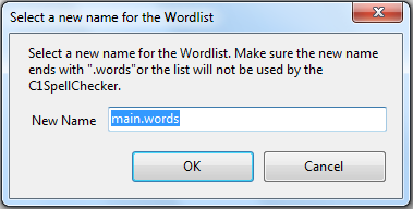 To rename the word list, select the Rename Wordlist button and change the default "main.words" name: