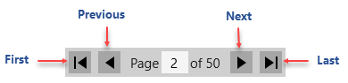 InputPanel provides record navigation for making it easy to scroll through the records without any code implementation. InputPanel navigation enables movement to the first, previous, next, and last record of a collection. It also allows you to jump to a particular record by entering the specific record number. The following image shows the navigation buttons available in the InputPanel control.