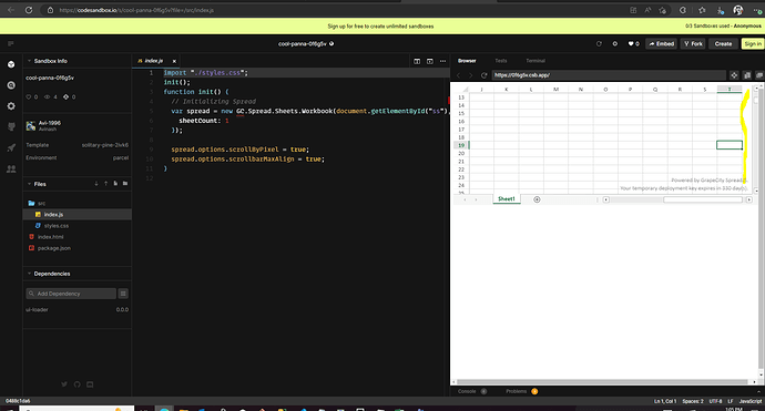 spread.bind("LeftColumnChanged", (e, { sheet }) => {